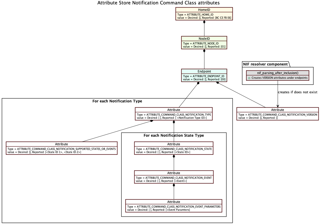 An example of attribute store tree organization for Notification Command Class is shown in the image below.