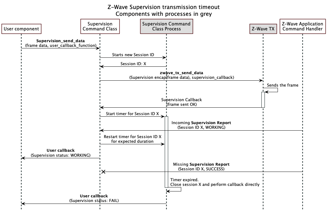 And a frame transmission with a missing Supervision report is illustrated in the following figure: